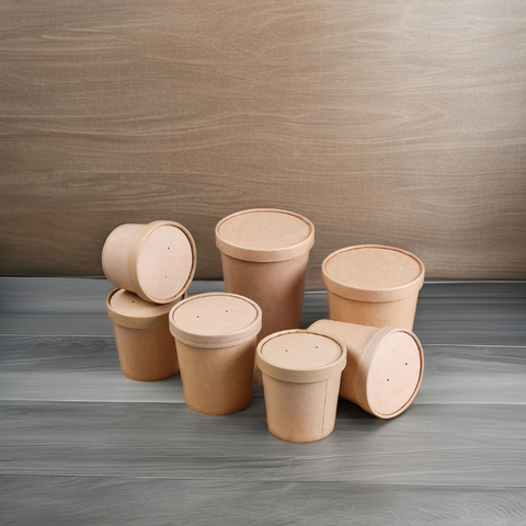 Ebelee 8oz 12oz 16oz 26oz 26oz 32oz monouso biodegradabile Togo zuppa tazza Custom Kraft ciotole di carta contenitore per zuppa calda con coperchio